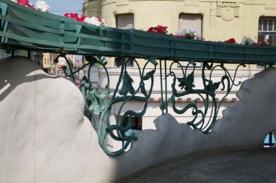 Épületfotó - a Reök-ház (Szeged, Tisza Lajos krt. 56.) lekerekített sarkának első emeleti erkélye