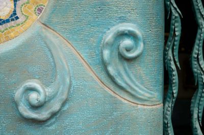 Épületfotó - a Schmidl-sírbolt (Budapest, Kozma utcai zsidó temető) pirogránit díszítésének részlete