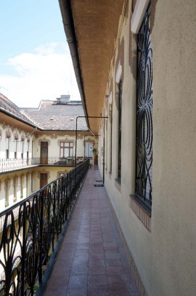 Épületfotó - a Schwarz-ház (Budapest, Dob utca 53.) harmadik emeleti függőfolyosója