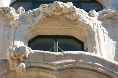 Épületfotó - a Sonnenberg-ház (Budapest, Munkácsy Mihály utca 23.) főbejáratának szobrászati dísze