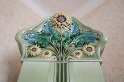 Épületfotó - a Szenes-ház (Budapest, Thököly út 46.) egyik lakásának eredeti cserépkályhája