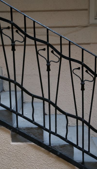 Épületfotó - a Weiss-ház (Budapest, Szent István krt. 10.) egyik földszinti korlátrácsa az udvarban