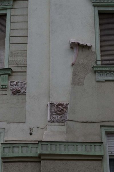 Épületfotó - a Weiss-ház (Budapest, Szent István krt. 12.) keleti oldalhomlokzatának és délkeleti sarokrészének kapcsolódása a második emeleten