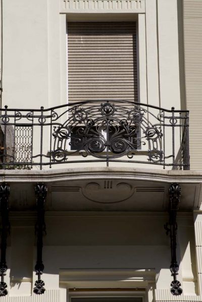 Épületfotó - a Wertheimer és Frankl Áru-és bérház (Budapest, Hold utca 6.) második emeleti erkélyrácsa