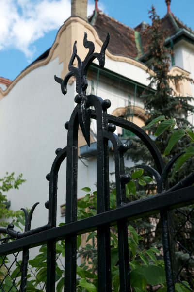 Épületfotó - a Zala-villa (Budapest, Ajtósi Dürer sor 25.) kovácsoltvas kerítésének részlete