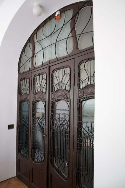 Épületfotó - az Egger-villa (Budapest, Városligeti fasor 24.) főlépcsőházának galériájáról nyíló ajtaja