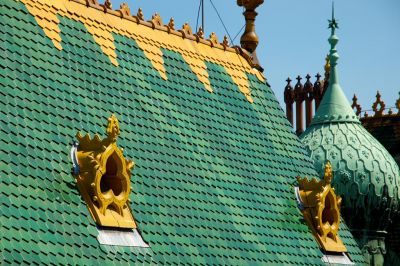 Épületfotó - az Iparművészeti Múzeum baloldali főlépcsőházának tetőrészlete
