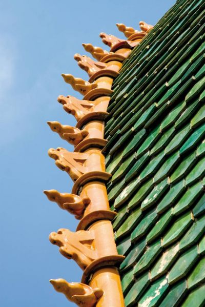 Épületfotó - az Iparművészeti Múzeum főkupolájának mázas kúpcserepei