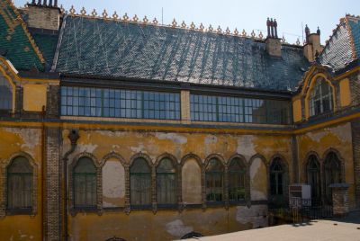 Épületfotó - az Iparművészeti Múzeum Hőgyes (Rákos) utcai szárnyának udvari homlokzata