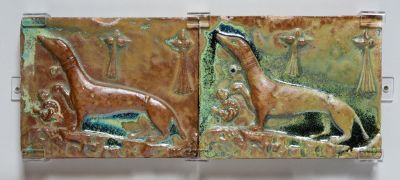Épületkerámia - fríz elemei-hermelinekkel (az ún. Bigot-pavilon része)