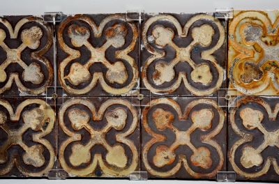 Épületkerámia - padlócsempe-négykaréjos levéllel (az ún. Bigot-pavilon része)