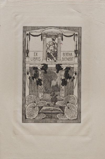 Vogeler a worpswedei művészkolónia grafikusa, ismert Jugendstil-illusztrátor, több mint száz ex libris alkotója. Bertha Bienert (drezdai malomtulajdonos neje) ex librise különböző eredetű motívumok harmonikus kompozíciója, poétikus érzülettel, mély lírizmussal. Vogeler egyik fő ideája a természethez való visszatérés a panteista szellemiség jegyében. A könyvjegy két oldalán ibolya határolja a szépen gondozott kertre nyitott ablakot, felütött könyv fekszik. Az alsó rész sötét tónusával ellentétes a világító felső, Michelangelo egyik főművének, Lorenzo de Medici firenzei síremlékének főalakjával.