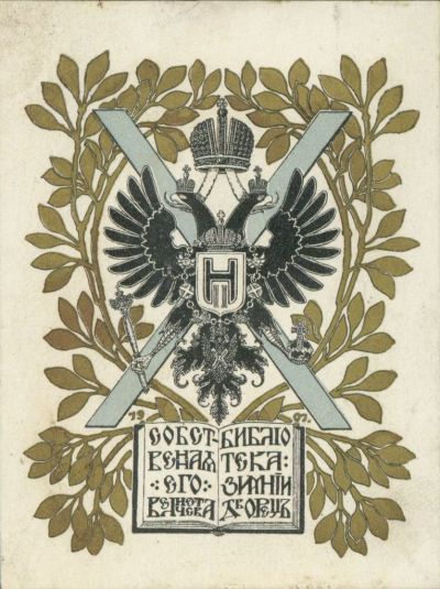 Ex libris - Bibl. de l'Empereur Nicolas II. Palais d'Hiver a St. Petersb.