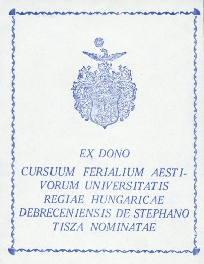 Ex libris - Debreceni Magyar Királyi Tisza István Tudományegyetem