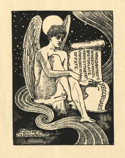 A nyitott könyvben a középkori perzsa csillagász, költő, Omár Kháyyám egyik versének részlete olvasható. Oly’ bensőségesen írt és vallott az életről, hogy a 19. század második felében, az angol fordítást követően igen népszerű lett Európában. Az idézet, amelyhez a kép tulajdonképpen illusztrációként szolgál, a The Studio c. művészeti folyóirat szerkesztőjének ex librisét gazdagítja: