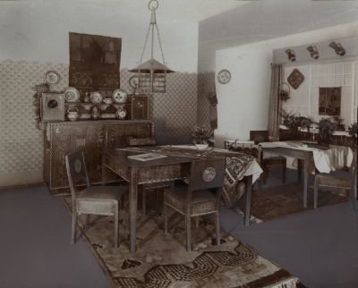 Kiállításfotó - Toroczkai Wigand Ede tervezte ebédlőberendezés az Iparművészeti Társulat 1911. évi Lakásművészeti Kiállításán