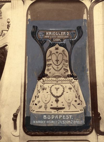 Kiállításfotó - ékszerek az 1900. évi Párizsi Világkiállítás magyar iparművészeti csoportjának tárlatán