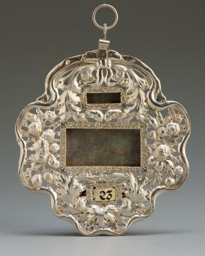 A tárgy mesterjegye – ovális alakú pajzsban "S" majuszkula – vélhetően azonos Christoph II. Saler mesterjegyével, aki 1691 és 1736 között tevékenykedett Augsburgban (vö.: Seling 2007, 421., Nr 1869).