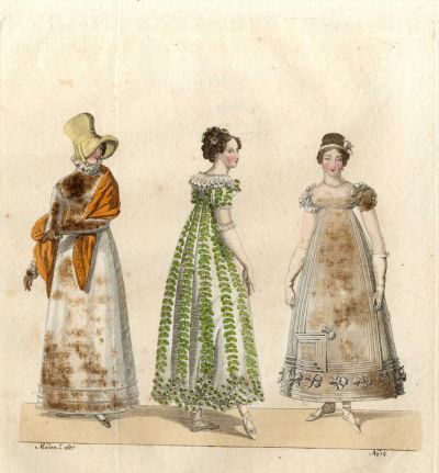 Divatkép - három női viselet, melléklet, Wiener-Moden-Zeitung und Zeitschrift für Kunst schöne Literatur und Theater