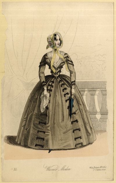 Divatkép - különböző női ruhák kiegészítőkkel, ,melléklet, Wiener Zeitschrift für Kunst, Literatur, Theater und Mode
