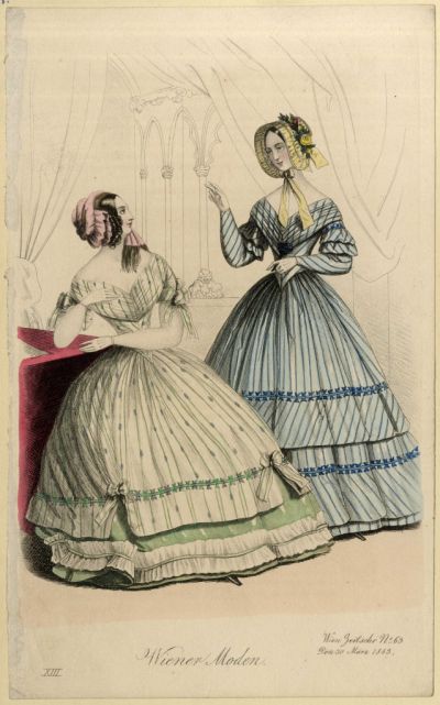 Divatkép - különböző női ruhák kiegészítőkkel, ,melléklet, Wiener Zeitschrift für Kunst, Literatur, Theater und Mode
