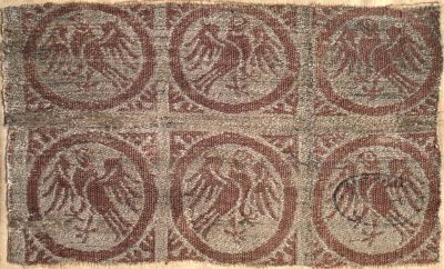 Azonos mintájú szövettöredék található a nürnbergi Germanisches Nationalmuseum gyűjteményében (ld: Theodor Hampe: Katalog der Gewebesammlung des Germanischen Nationalmuseums. Nürnberg 1896, Nr. 422. - ld. itt), valamint a berlini Kunstgewerbemuseumban (ld.: Otto von Falke: Kunstgeschichte der Seidenweberei. Bd. 2. Berlin 1913, Nr. 268. - ld. itt).
