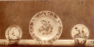 Fénykép - fedeles csésze aljjal, porcelán, Meissen, XVIII. sz.; tányér, porcelán, Kína (?) és csésze aljjal, színesen porcelán meisseni modorban, Zürich, XVIII. sz., II. Ernst Aukció