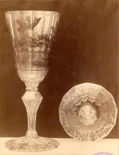 Fénykép - fedeles díszserleg Batthyány család címerével, köszörült üveg, cseh vagy sziléziai, XVIII. sz. közepe, az FLT 1982 díszserleg másik oldala