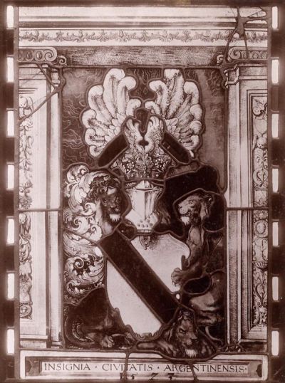 Fénykép - Hans Goldwing (? ): Festett üvegablak Strasbourg városi címerével, Basel, 1523. körül