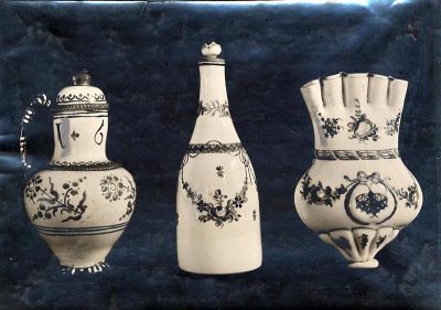 Fénykép - kancsó, palack, tulipánváza, tejüveg, színes zománcfestésű dísszel, magyar 1630 és XVIII. sz.
