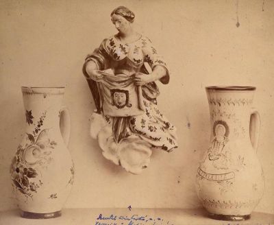 Fénykép - kancsók és szenteltvíztartó, fajansz, Holics, XVIII. sz.
