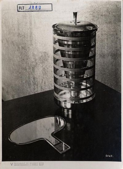 Fénykép - kézi tükör fedeles serleggel (?) kristályüveg, FontanaArte, Milánói Triennálé