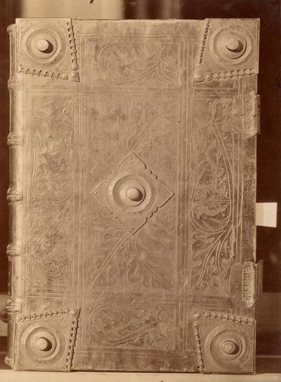 Fénykép - könyvtábla, bőr, sajtolt díszítéssel, kézirat kötése, XV. sz., Magyar Nemzeti Múzeum