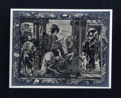 Fénykép - Lajos király ágaskodó lovon c .gobelin a XIII. Lajos lovagló leckéi sorozatból, Baldass, Ludwig: Die Wiener Gobelinsammlung c. műből