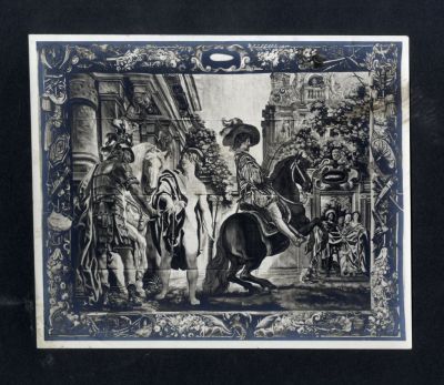 Fénykép - Lajos király passade-ot jobbra lépő lovon c. gobelin a XIII. Lajos lovagló leckéi sorozatból, Baldass, Ludwig: Die Wiener Gobelinsammlung c. műből
