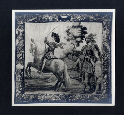 Fénykép - Lajos király passade-ot lépő lovon c. gobelin XIII. Lajos lovagló leckéi sorozatból, Baldass, Ludwig: Die Wiener Gobelinsammlung c. műből
