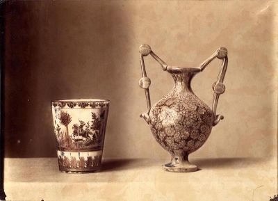 Fénykép - pohár duplafalú üveg, cseh, XVIII. sz. és váza, ún. Millefiori, Velence, XIX. sz.
