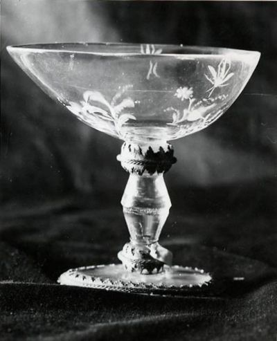 Fénykép - talpas csésze, kristály, köszörült dísszel, arany foglalattal, Fraknó, Esterházy kincstár