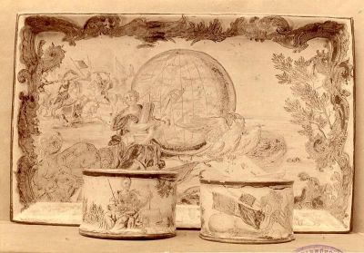 Fénykép - tintatartó készlet, fajansz, német (?), XVIII. sz.