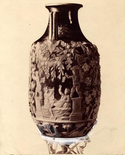 Fénykép - urna, üveg, cameo köszörüléssel, azurkék alap, domborított világos alakokkal, Pompei, az FLT 2154 más nézőpontból