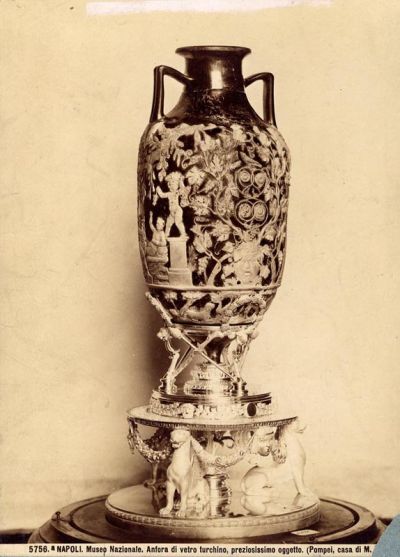 Fénykép - urna, üveg, cameo köszörüléssel, azurkék alap, domborított világos alakokkal, Pompei, az FLT 2154 más szögből