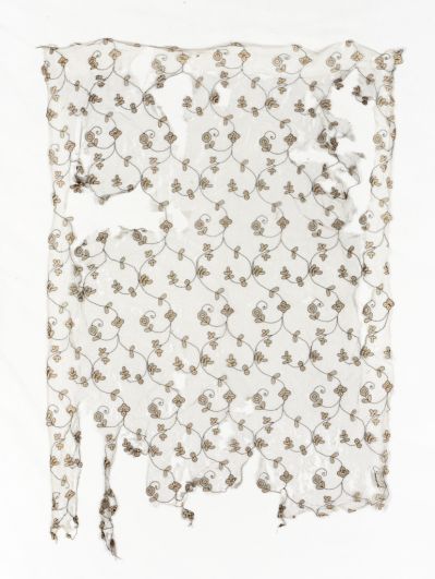 Anyag: | aranyszínű fémfonal; ezüstszínű fémfonal; selyemtüll |