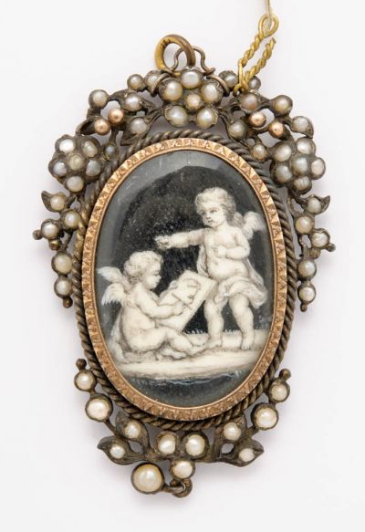 Anyag: | aranyozott keret; ezüst; gyöngy |