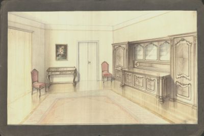 Jelzés: | jobbra lent DH. hátul ceruzával „terv. a moszkvai / magyar követség számára / Ebédlő-részlet"; tintával „Ebédlő-részlet” |