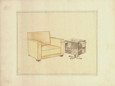 Bútorterv - karosszék és dohányzóasztalka látszati rajza