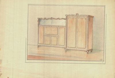 Jelzés: | jobbra lent DH. hátul tintával: „Ú. n. Kombinált szekrény kísérlet / Darilek Harry terve"; ceruzával: „kivitelezetlen terv 1920 k. „ |