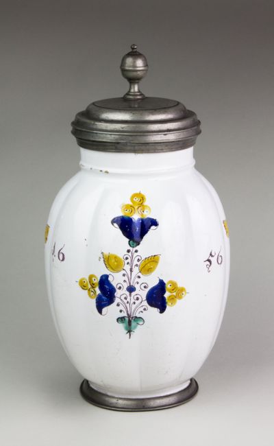 Technika: | fehér ónmázzal fedett; színesen festett |