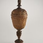 A ritka és különleges anyagból készült serleg kör idomú, orsós talpát kagylós és leveles koszorú díszíti. Noduszát négy női herma alkotja. Tölcséres formájú kupáján egy rinocérosz és egy elefánt látható pálmák között, zenélő, ruhátlan ifjak és egy majom kíséretében. Boltozatos fedelén pálmák között gyermekeit tápláló anya, valamint két botot tartó és kürtöt fújó férfi, továbbá két, egymással szemben a földön fekvő alak látható. A fedél fogóát négy négeralak által tartott kosár alkotja. A serleg és fedele több részből készült, és utólag állították össze.