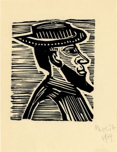 Grafika - Jobbra néző szakállas férfi portréja