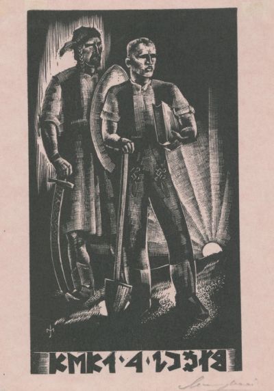 Grafika - Két férfi alak (Miénk a jövő, rovásírással)